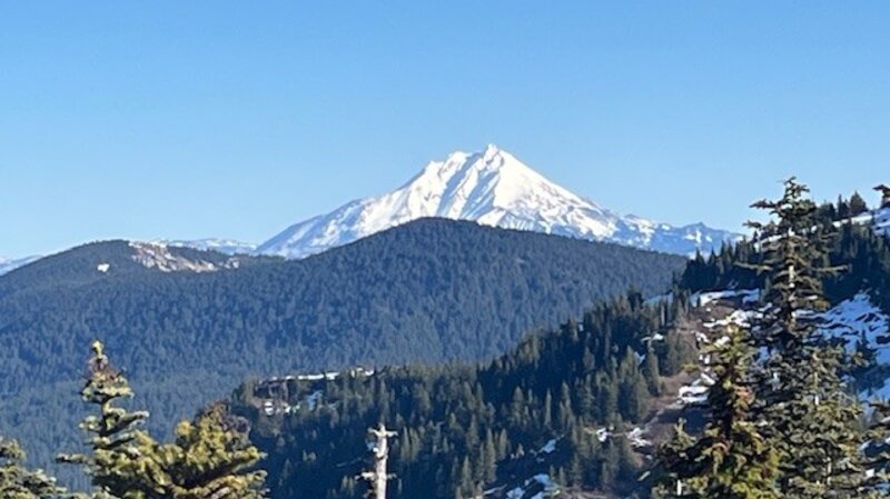 On January 24, 2026, the trailhead to Iron Mountain was snow free. Located on Highway 20 at Tombstone Pass, the hike to Iron Mountain is favored by many residents in Central Oregon and  the Willamette Valley as a wonderful place to see wildflowers in the spring/summer. Over 300 species of wildflowers have been identified on Iron Mountain and the summertime traffic to see these can create crowded trails. However, in winter few hike the trail when snow makes it challenging. But in January 2026, with warm weather and limited snow, the trail had very few people and just a few icy snow patches, most near the top of the mountain. Microspikes and trekking poles made it easier to summit the mountain with much of the trail remaining free of snow. The entire hike up and back from the Browder Ridge parking area was just under 4 miles with just over 1400 feet of elevation gain. The long term weather forecast does not anticipate a lot of snow the rest of January, but perhaps in February there may be more precipitation.