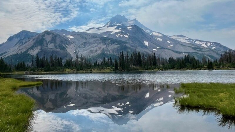 There are hidden treasures in the Three Sisters Wilderness which can be found for those willing to leave the path and follow a compass or GPS to locate them. In particular, there are several beautiful tarn lakes located roughly a half mile off the Green Lakes trail which connects the Green Lakes valley with Park Meadow over the pass between South Sister and Broken Top. There is no path to these lakes, but people good with following a downloaded map can find them. The first four lakes can mirror views of South Sister and their general location can provide views toward Golden Lake as well.